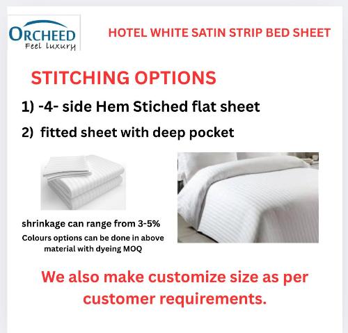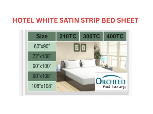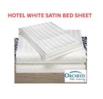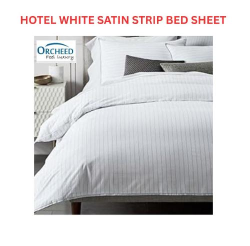 ORCHEED WHITE SATIN STRIP BED SHEET FOR RESORTS / HOTEL